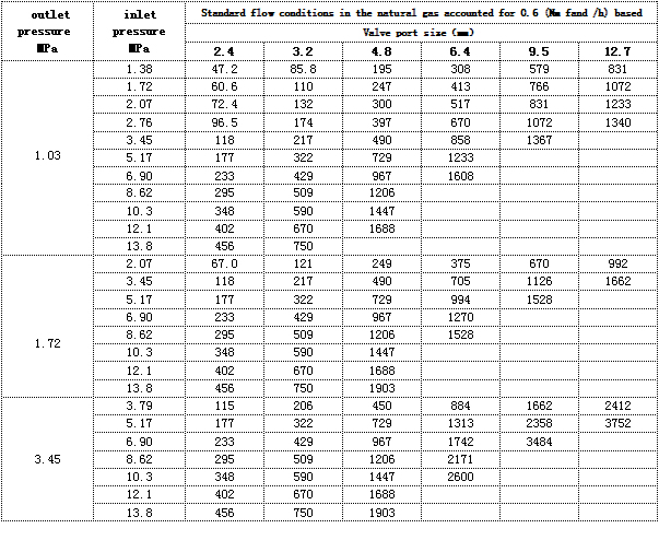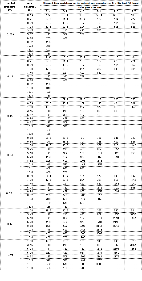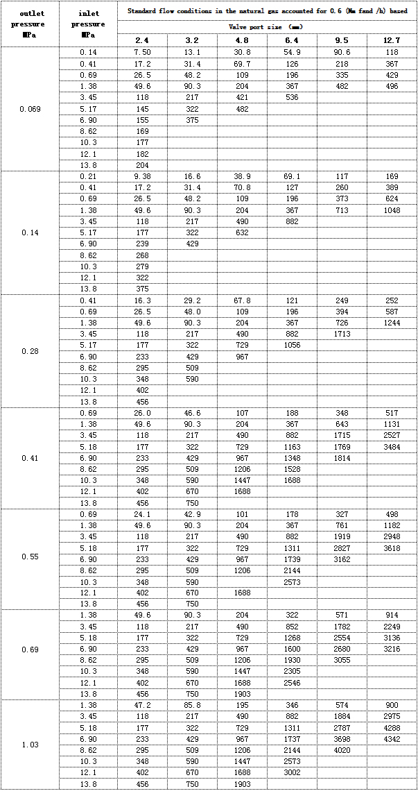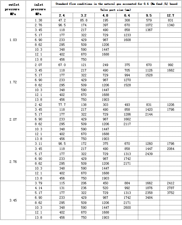 Pressure flow control table of pressure regulating valve