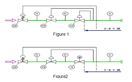 As shown in Figure 1 and 2, the safety shut-off valve (SSV) pressure sampling point is 5-8xDN from the working valve (PCV or PV) .