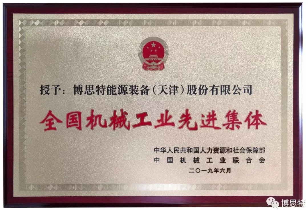 ? 2019年6月25日,公司被授予“全國(guó)機(jī)械工業(yè)先進(jìn)集體”榮譽(yù)稱號(hào),是對(duì)公司技術(shù)創(chuàng)新、規(guī)范管理、人才建設(shè)等方面的肯定和鼓勵(lì),將是博思特公司發(fā)展史上的又一重要里程碑。博思特人深知自己還是機(jī)械行業(yè)的一名新兵、小兵,將把國(guó)家對(duì)我們的過(guò)度鼓勵(lì)作為激勵(lì),堅(jiān)持把科技創(chuàng)新作為公司發(fā)展的核心引擎,為油氣裝備行業(yè)再立新功,推動(dòng)行業(yè)發(fā)展。