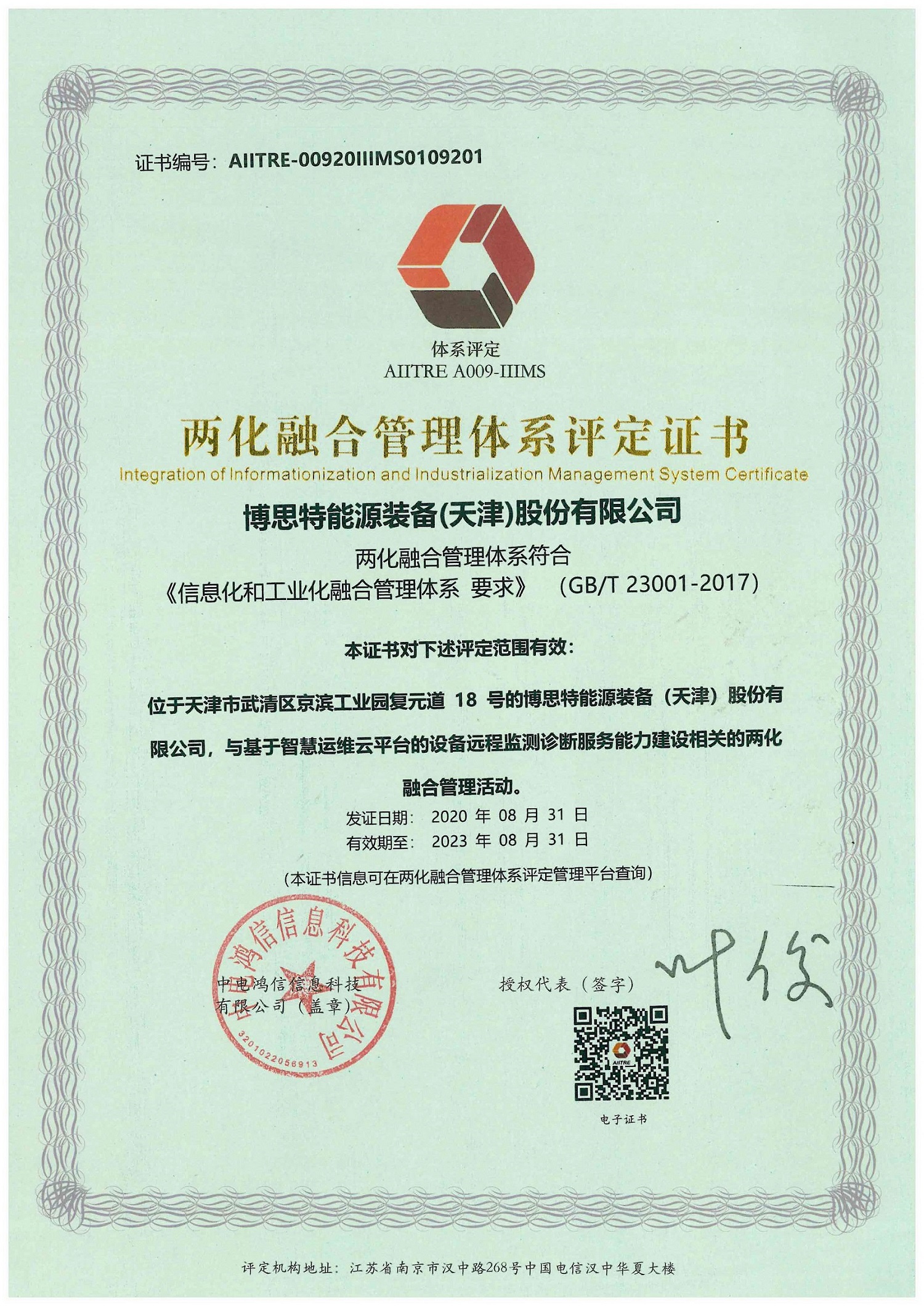 年內(nèi)取得《兩化融合管理體系評(píng)定證書(shū)》,標(biāo)志著博思特工業(yè)化與信息化融合邁上了新的臺(tái)階。
