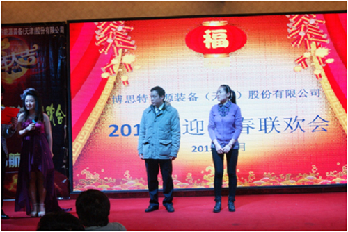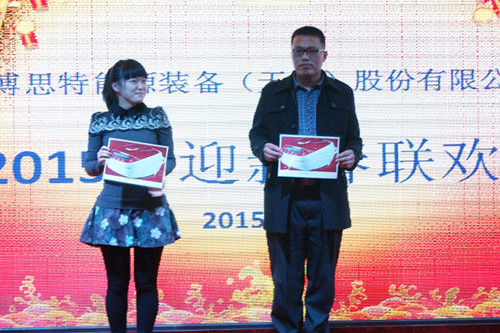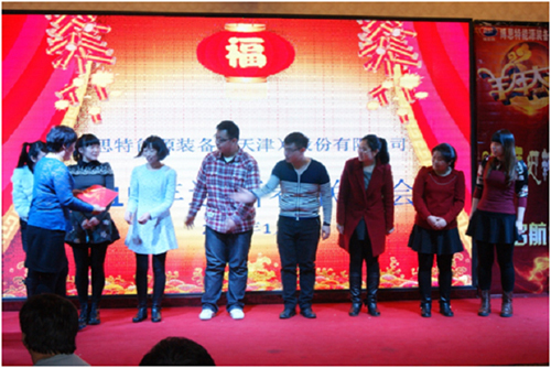 2015年1月30日,公司在廊坊開發(fā)區(qū)百味園酒店舉辦了“啟航2015迎新春聯(lián)歡會”。 此次聯(lián)歡會中,各部門推選的十余個優(yōu)秀節(jié)目參加了演出?!恫┧继匕嫘√O果》滿載著博思特人的夢想和希望,在一群熱情洋溢的青年人的精彩演繹中,顯得熠熠生輝。小品《斗氣》、相聲《新聞晚知道》和營銷部的三句半大家?guī)砗芏鄽g樂和激勵。歌曲《永不退縮》、《超級英雄》、《歡喜就好》、《母親》、《我好想你》、《相信自己》等將晚會一次次推向高潮。在“我最喜愛的節(jié)目評選”活動中,《斗氣》、《母親》等四個節(jié)目獲得評選大獎。 此次聯(lián)歡會還為近兩個月過生日的同事舉行慶祝生日活動,貝特爾的徐智明獲得了幸運壽星獎。會后晚宴,同事們舉杯共飲,互拜新年,祝愿同事及家人新春快樂,祝愿博思特的明天更加美好!