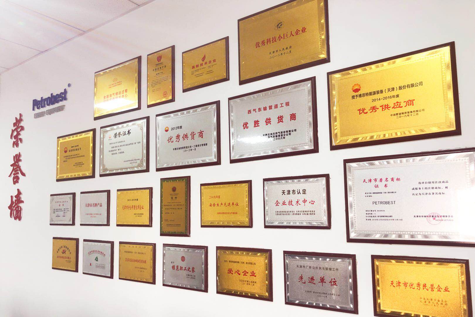 ????? 2017年公司有6項發(fā)明專利進(jìn)入實質(zhì)審核階段,取得了十幾項實用新型及軟件著作權(quán)專利。在取得多項發(fā)明和實用新型專利的同時,公司獲得了“天津市專利獎”、“天津市著名商標(biāo)”、“天津市專精特新產(chǎn)品”、“天津市重點新產(chǎn)品”、“天津市和諧企業(yè)”等多個獎項,公司董事長獲得“天津市武清區(qū)杰出人才”,多名員工獲得天津市二層次人才等榮譽(yù),滿滿的榮譽(yù)墻是我們精彩歷程的見證。